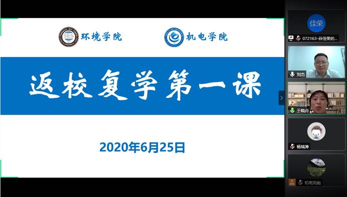查看详情6月25日晚,校党委常委、副校长刘杰与环境学院和机电学院复研学生、毕业生相约 “云端”,讲授以《讲好中国抗疫故事——弘扬社会主义核心价值观》为主题的“返校复学第一课”。学工处副处长蒋怀柳、两个学院学工组全体老师、复研学生和毕业生近300人线上参与学习…
