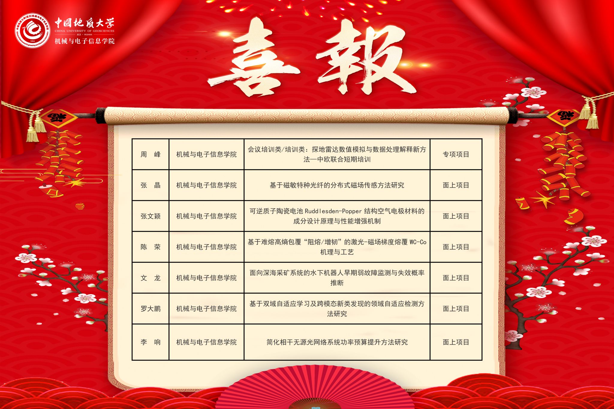 查看详情日前,国家自然科学基金委员会公布了2025年度国家自然科学基金申请项目评审结果,免费av影片共有7个项目获得资助,其中面上项目6项、专项项目1项。 周峰老师申报的《会议培训类/培训类:探地雷达数值模拟与数据处理解释新方法—中欧联合短期培训》获得专项项目资助…