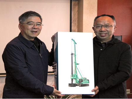 为了加强校企产学研合作,2019年12月11日,学院书记瞿祥华、院长丁华锋、副院长文国军及相关专业老师一行走访了上海金泰工程机械有限公司,受到公司总经理林坚、副总经理陈雪英等热情接待。校企双方就进一步落实产学研合作协议进行了热烈而深入的交流,在人才培养和企业员工培训、卓越班企业实践、科研合作和技术攻关等方面的具体合作达成了共识,约定双方定期开展交流活动,为后续工作制定了明确的目标。交流会上,林坚总经理代表上海金泰工程机械有限公司向机电学院赠送了一套旋挖钻机模型。