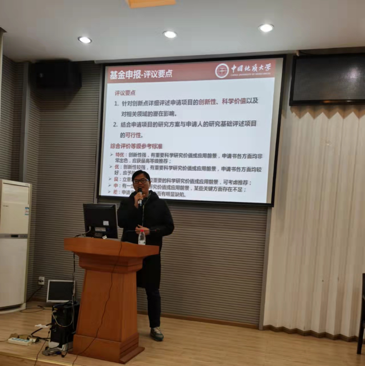 机械系葛明峰老师从选题开始到提交基金申报书详细介绍成功获得基金的经验,对每一步骤都进行精准细致解读,提醒教师要根据评议要点撰写基金,兼顾大同行和小同行,评审专家关注的方面等尽量做到无懈可击。