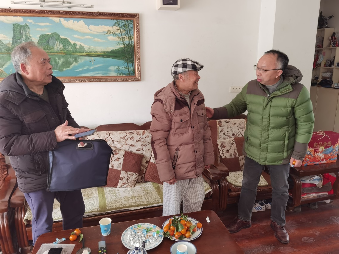 2022年1月13日下午,学院党委书记瞿祥华代表院党委和工会与地大退休十六支部孙立鹏、韦念龙、邓群等同志一起登门慰问部分住校离退休教职工。