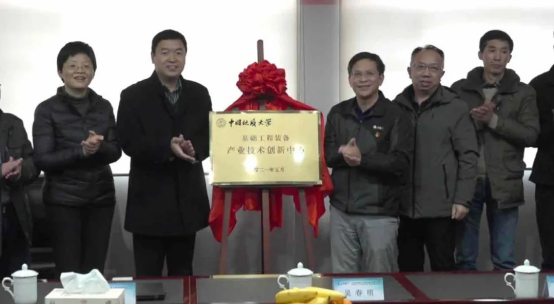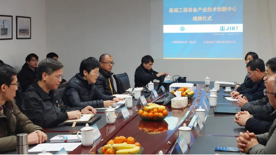 (武汉)科学技术发展院副院长吴春明和上海金泰工程机械有限公司党委书记陈雪英分别代表校企双方致词,金泰公司总经理黎隶万和中国地大(武汉)科学技术发展院副院长吴春明为“中心”共同揭牌。