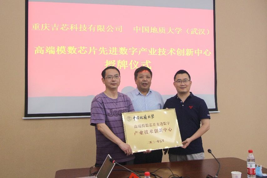 在加深了双方的了解和认识后,科学技术发展院常务副院长胡圣虹为中心授牌,吉芯科技副总经理付东兵及机电学院副教授姚亚峰联合接牌。随后双方人员围绕人才培养、技术研发、深化校企合作等事项展开座谈交流。