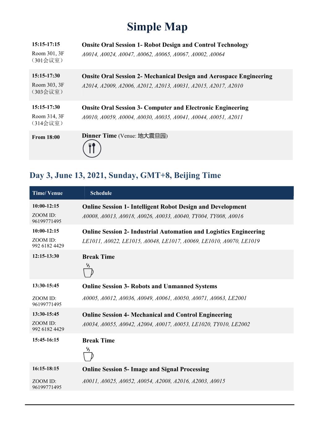 ICRAS 2021第五届机器人与自动化科学国际会议会议议程