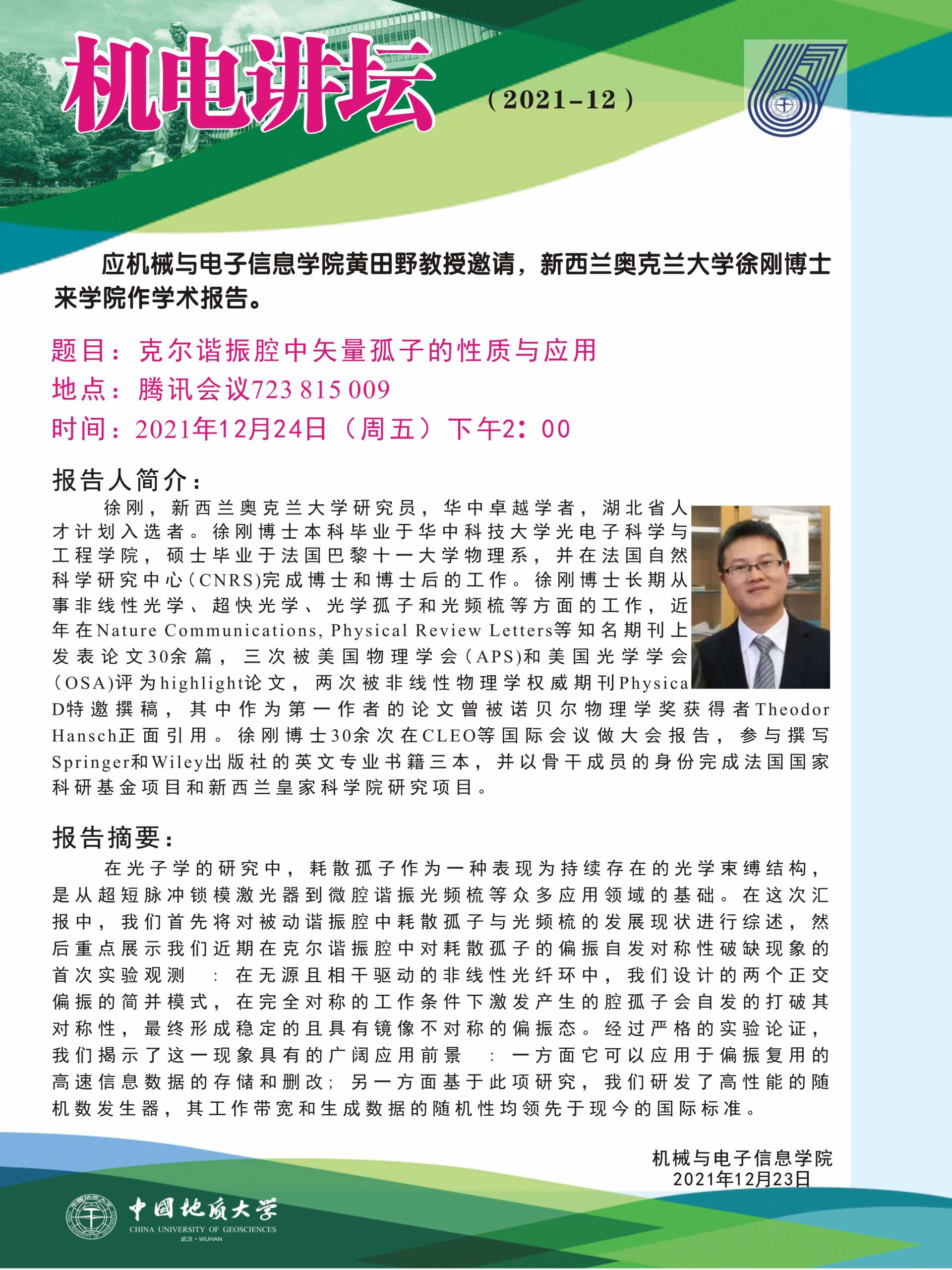 机电讲坛2021-12:新西兰奥克兰大学徐刚博士学术报告