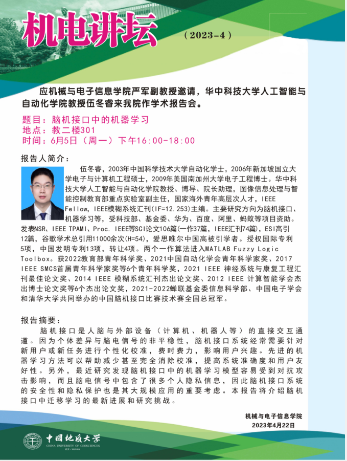 【6月5日】机电讲坛(2023-4:华中科技大学人工智能与自动化学院教授伍冬睿来免费av影片作学术报告会