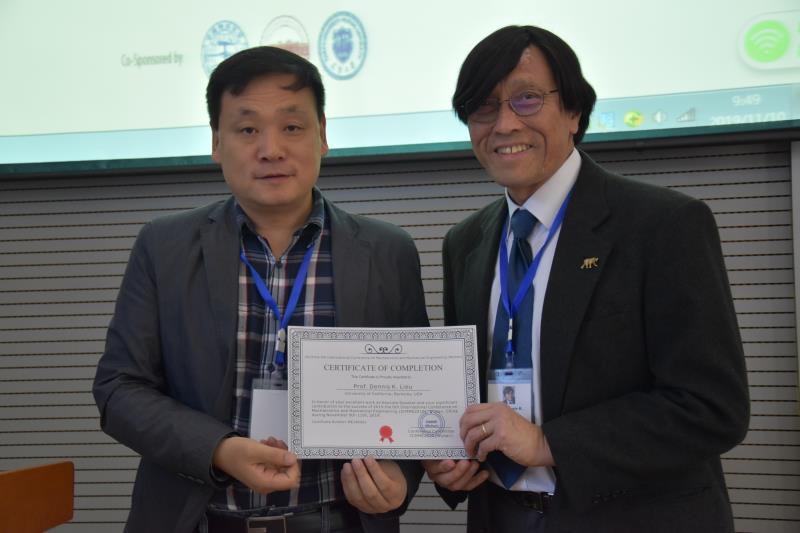 院长丁华锋教授致开幕辞,代表所有大会委员会成员对学者们的出席表示热烈欢迎,他表示相信各位专家的精彩报告与讨论将推动机电与机械工程领域的前沿研究,加强领域了解、促进合作。来自美国加州大学伯克利分校的Dennis K. Lieu教授就混合动力汽车动能回收系统的控制作了主题演讲。会议共进行了4个主题演讲,随后,来自合肥工业大学的訾斌教授对演讲者进行了颁奖。