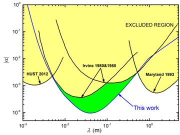罗杰教授团队与华中科技大学引力中心邵成刚教授团队、中山大学天琴中心杨山清教授团队共同合作的成果,主要依据华中科技大学引力中心2018年在《Nature》上公布的测量万有引力常数实验,利用两个实验中间距不一致的特性,分析实验中的非牛顿引力效应。该研究结果给出了50 – 500毫米间Yukawa形式破缺的最强限制,并在60 – 100毫米处将当前国际最好水平提高了7倍,达到国际领先水平,为该问题的理论研究提供了实验参考。