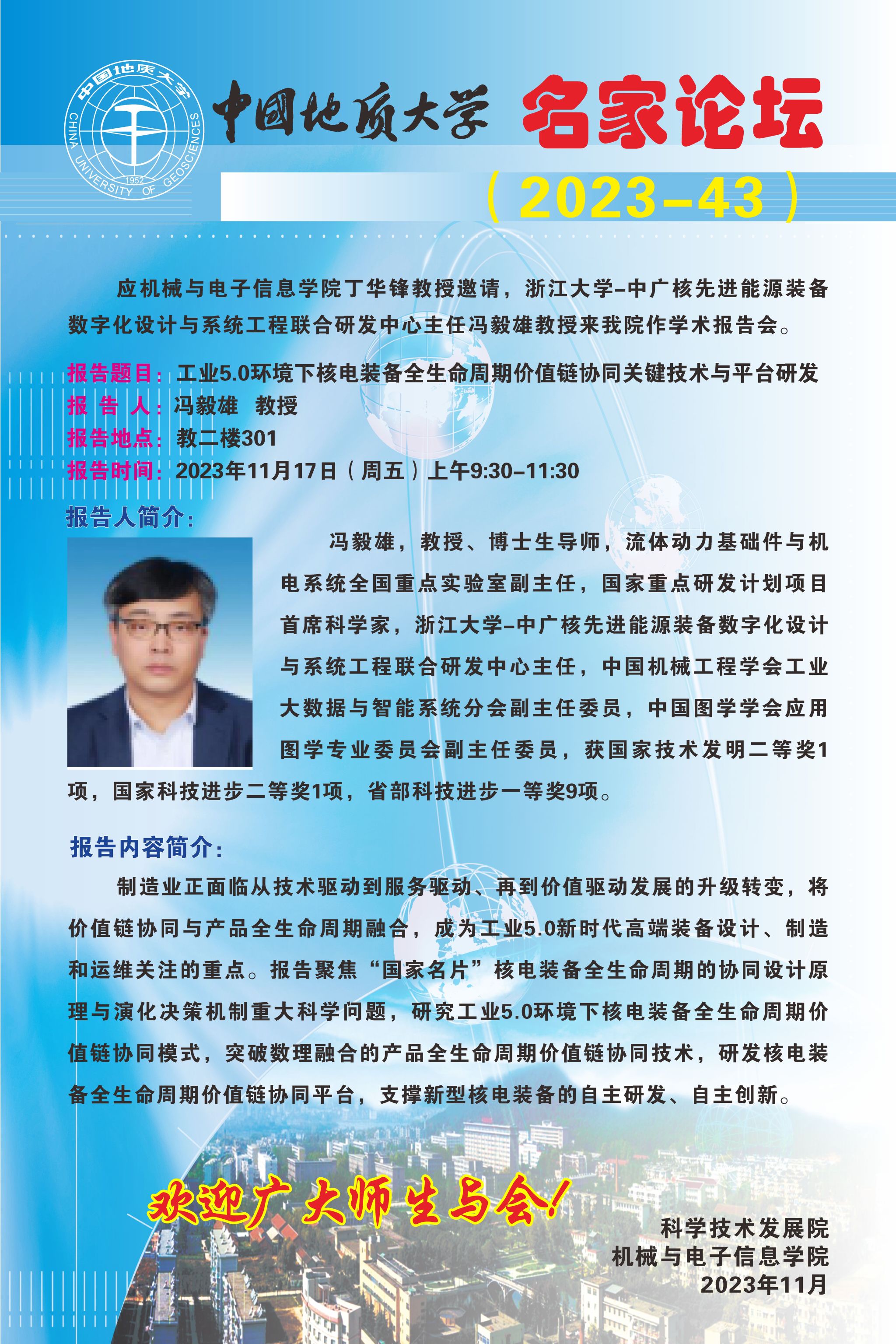 【11月17日】名家论坛(2023-43):浙江大学冯毅雄教授来免费av影片作学术报告会