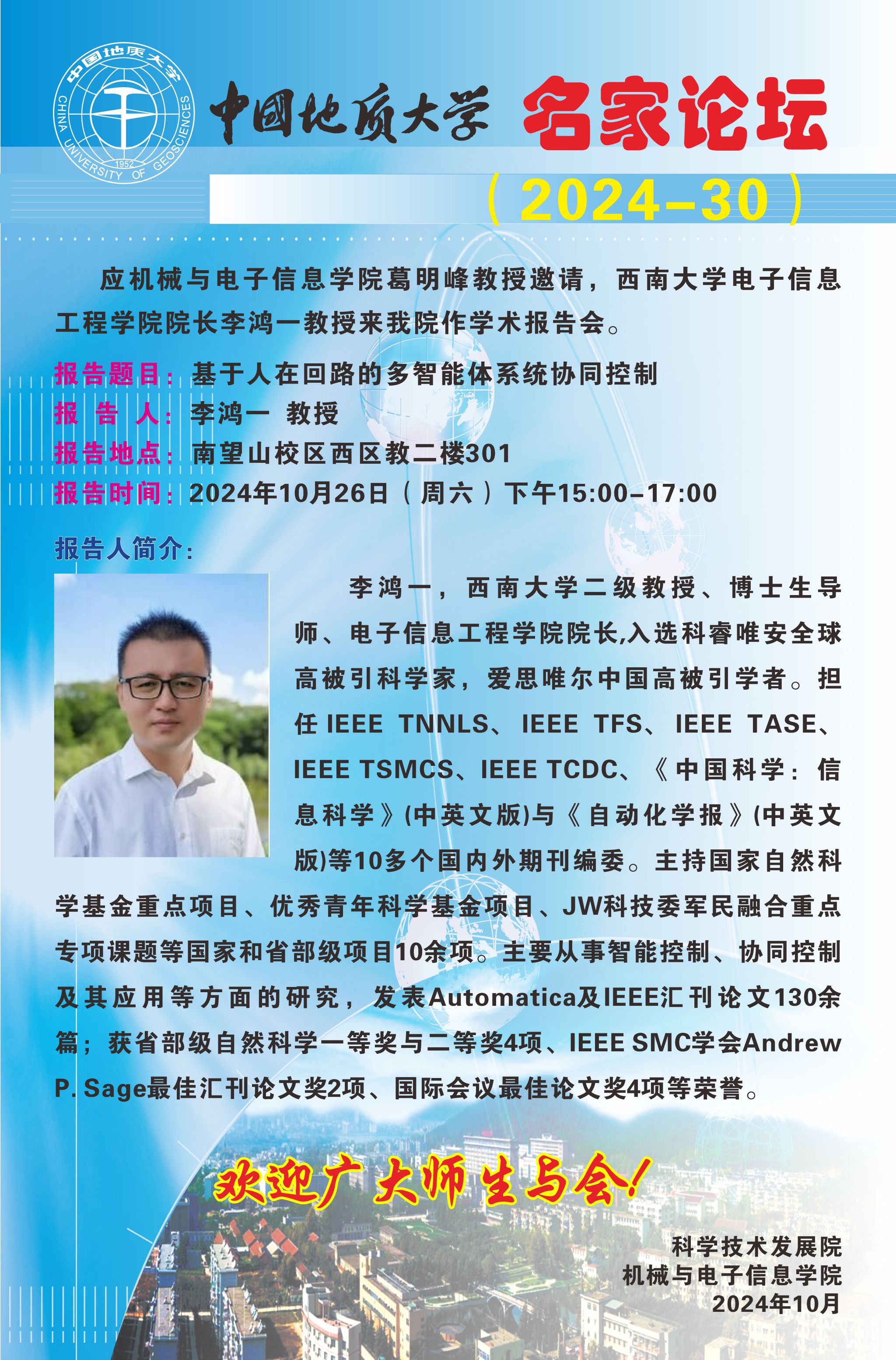 【10月26日】名家论坛(2024-30):西南大学李鸿一教授