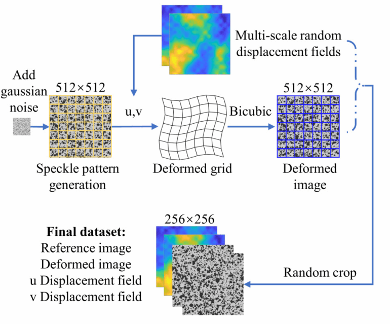 在数控机床等精密加工过程中,刀具的微小振动直接影响加工精度、表面质量与工具寿命。传统振动监测多依赖接触式传感器,存在安装复杂、成本高、易受噪声干扰等局限,难以实现全场、实时、微米级测量。为解决这一难题,研究团队创新性提出AT-DICNet框架,融合数字图像相关(DIC)技术与深度学习方法,通过高速工业相机实时采集刀具散斑图案,同步提取其多尺度变形特征,实现位移场端到端高精度预测。该框架的平均绝对误差仅为0.0221像素,均方根误差为0.0281像素;在真实车床切削实验中,对50um级位移的测量误差仅为1.18%,单帧图像处理时间约0.0093秒,为刀具磨损状态判断提供精准数据支撑。该系统无需接触工件,即可实现全场、可视化振动监测,为刀具状态研判、工艺优化与预警维护提供了可靠技术支撑,具有重要的工业应用价值与学术参考意义。