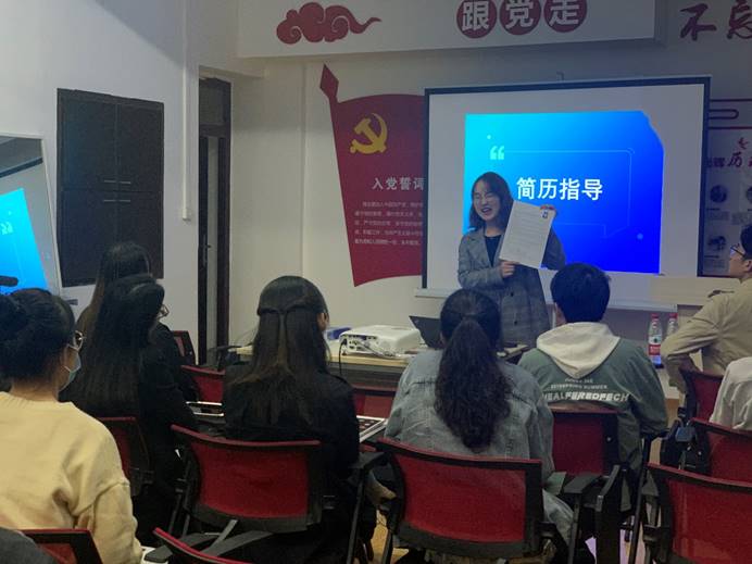 分享会期间,现场同学积极互动,张永欢主任现场对同学们的简历一对一提出修改意见。