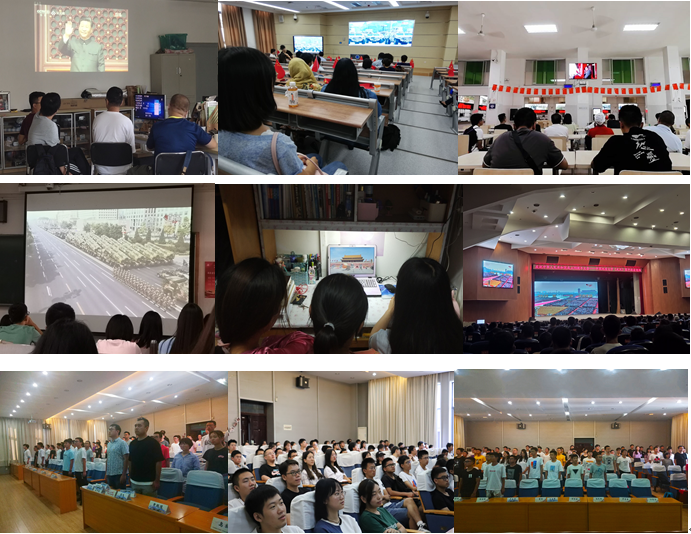 组织师生代表在弘毅堂与教二楼301报告厅观看大会盛况,同时号召全院同学以团支部、宿舍、实验室等为单位集中观看大会直播。