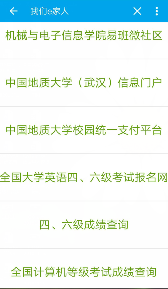 易班工作站特推出“e家”生活工具服务平台。由免费av影片学生自主开发的自助二手闲置市场、自助失/拾物招领系统已经全面上线使用,该功能让同学们通过自己的手机客户端就能实现操作。同时,“e家”目前整合了学生常用的的资源平台,包含地大官网、信息门户、四六级成绩查询等便捷入口,实现一站式服务。