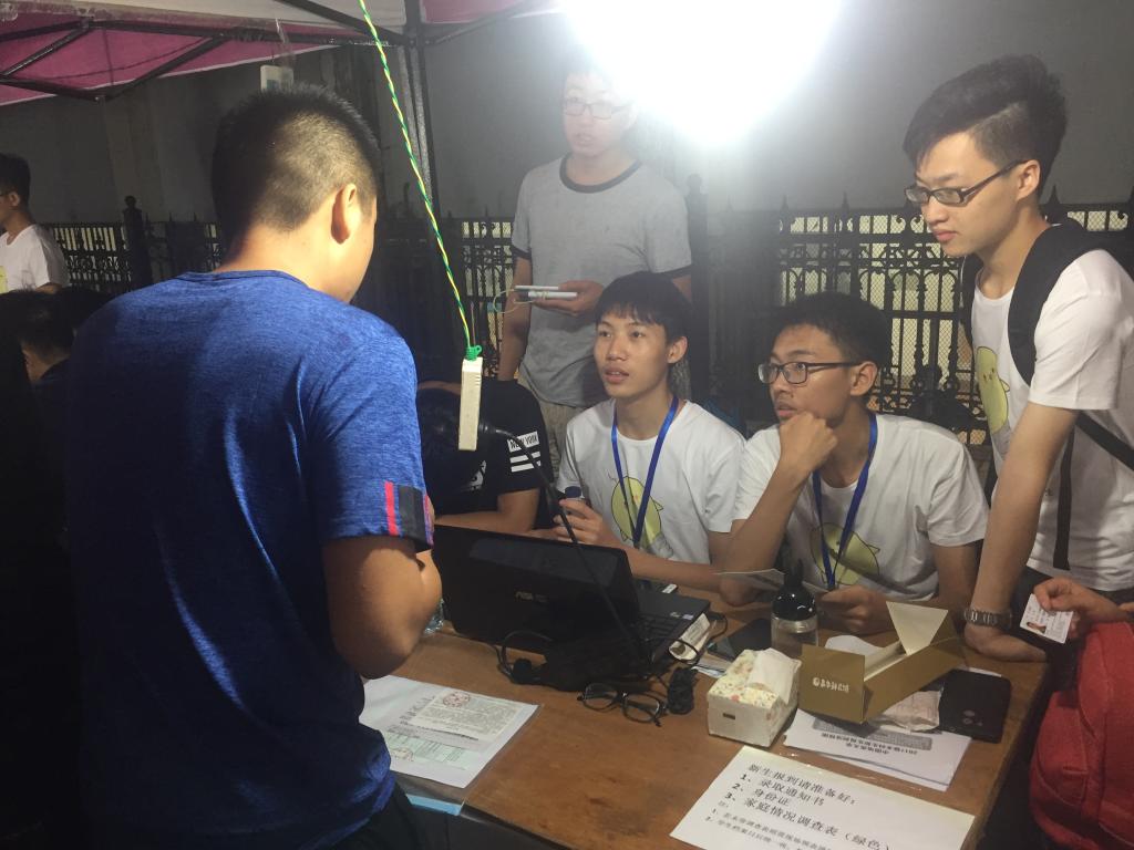 由学院老师及学生干部组成的迎新工作人员在迎新点有条不紊的为新生办理各项手续。2016级各个班级均派出志愿者于体育馆门前引领新生完成报到工作,各位新生在学院志愿者的引导下,完成新生注册、递交家庭调查表、报到签字等流程,并领取了学院团委和学生会为他们精心准备的新生大礼包。